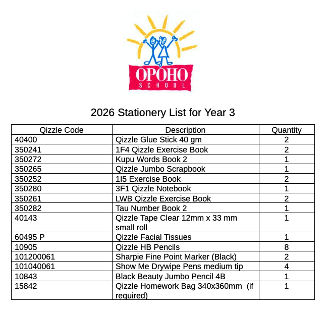 Stationery Lists 2026